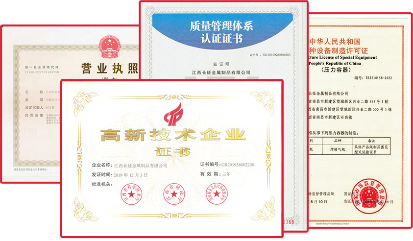 江西長征金屬制品有限公司,原大型航天軍工企業(yè)江西長征機(jī)器廠,是國家勞動部定點生產(chǎn)氣瓶的專業(yè)廠家。公司擁有雄厚的軍工技術(shù)力量,設(shè)備先進(jìn),檢測手段完備,按照GB/T5100標(biāo)準(zhǔn)和GB/T5842標(biāo)準(zhǔn)、GB/T17673標(biāo)準(zhǔn)要求,建立了嚴(yán)格的企業(yè)管理制度和完整有效的產(chǎn)品質(zhì)量保證體系。